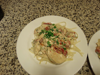 Today we tried Creamy Cajun Chicken. I must say it was a good choice! Quick and easy, well except for the fact that the two burner stove was a bit too small for both my sauce pan and the pot I was boiling pasta in! But had they both fit this would have been prepped and cooked within 30 minutes! Great easy recipe for anyone trying to wow on a time constraint!